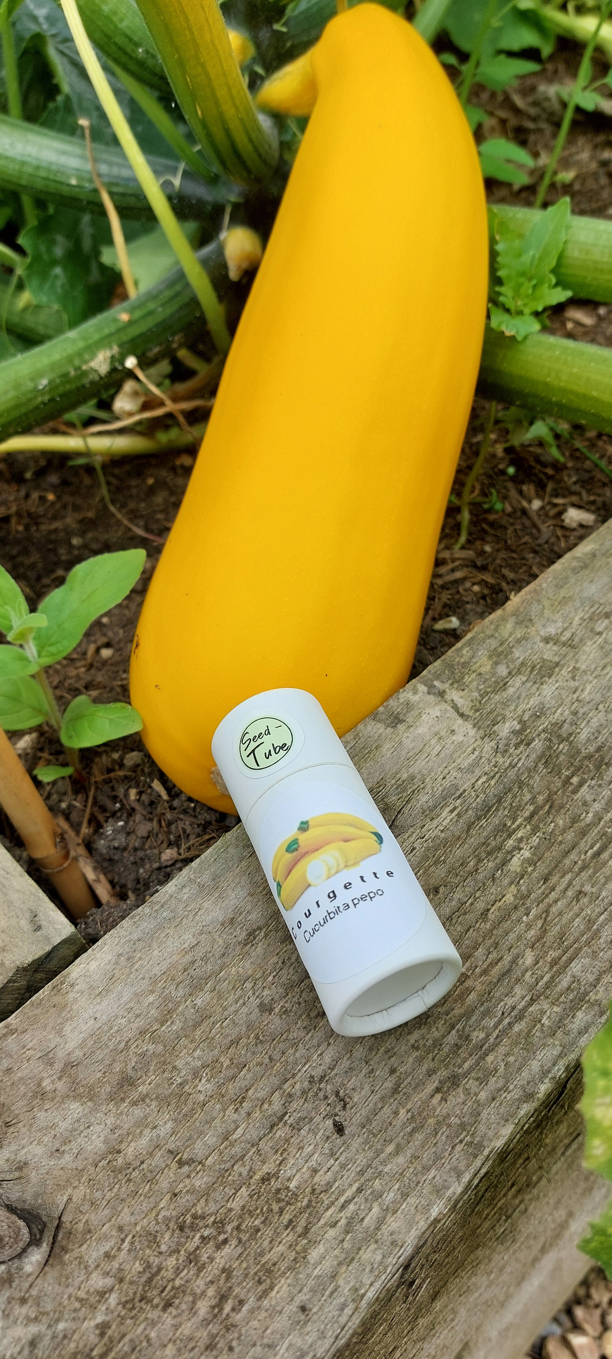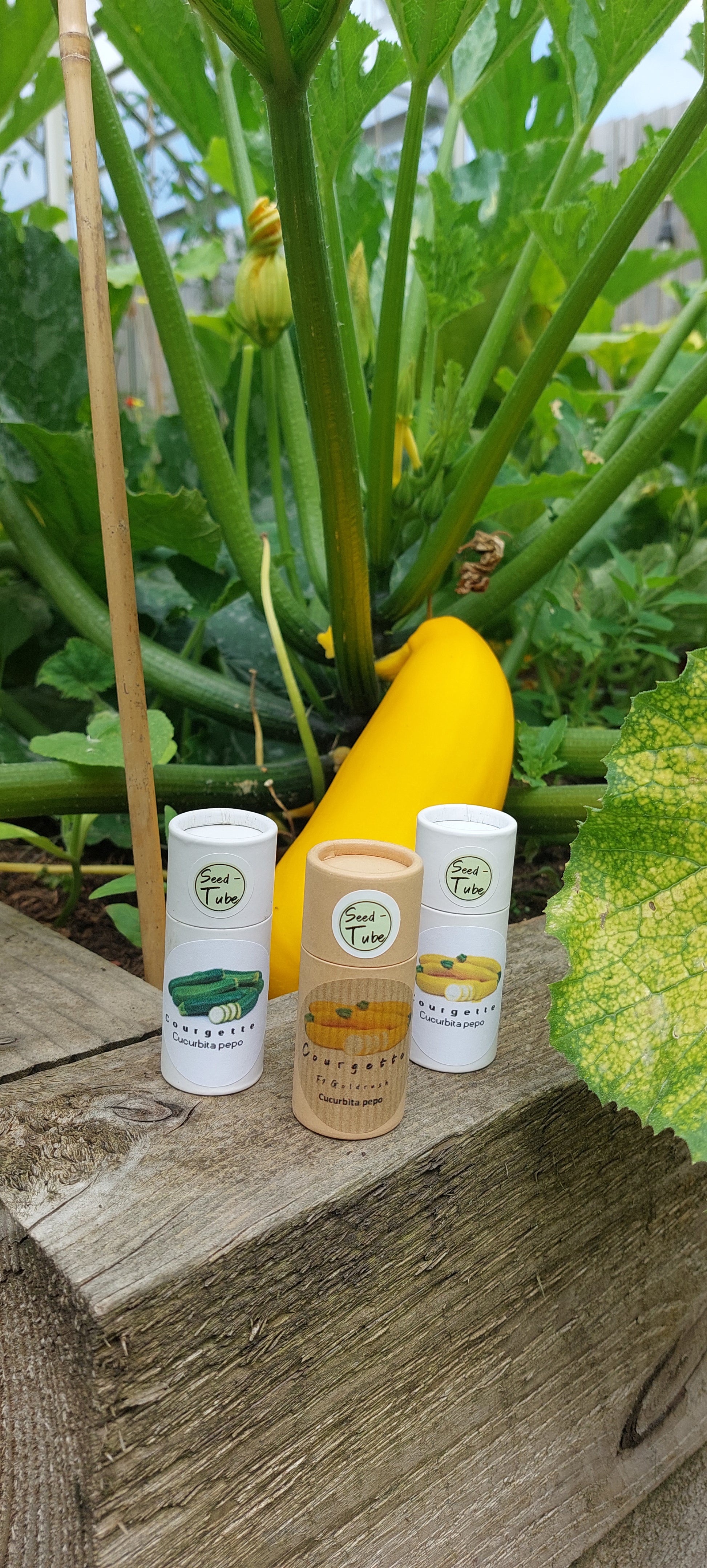 Courgette Seeds also known as zucchini seeds in a biodegradable tube including growing instructions. (variety may vary). Easy to grow and can be sown indoors from late March and hardened off before planting outside after the last frost, or sown directly into the ground once the danger of frost has passed. Courgettes are known for being versatile in the kitchen, suitable for grilling, sautéing, or baking.