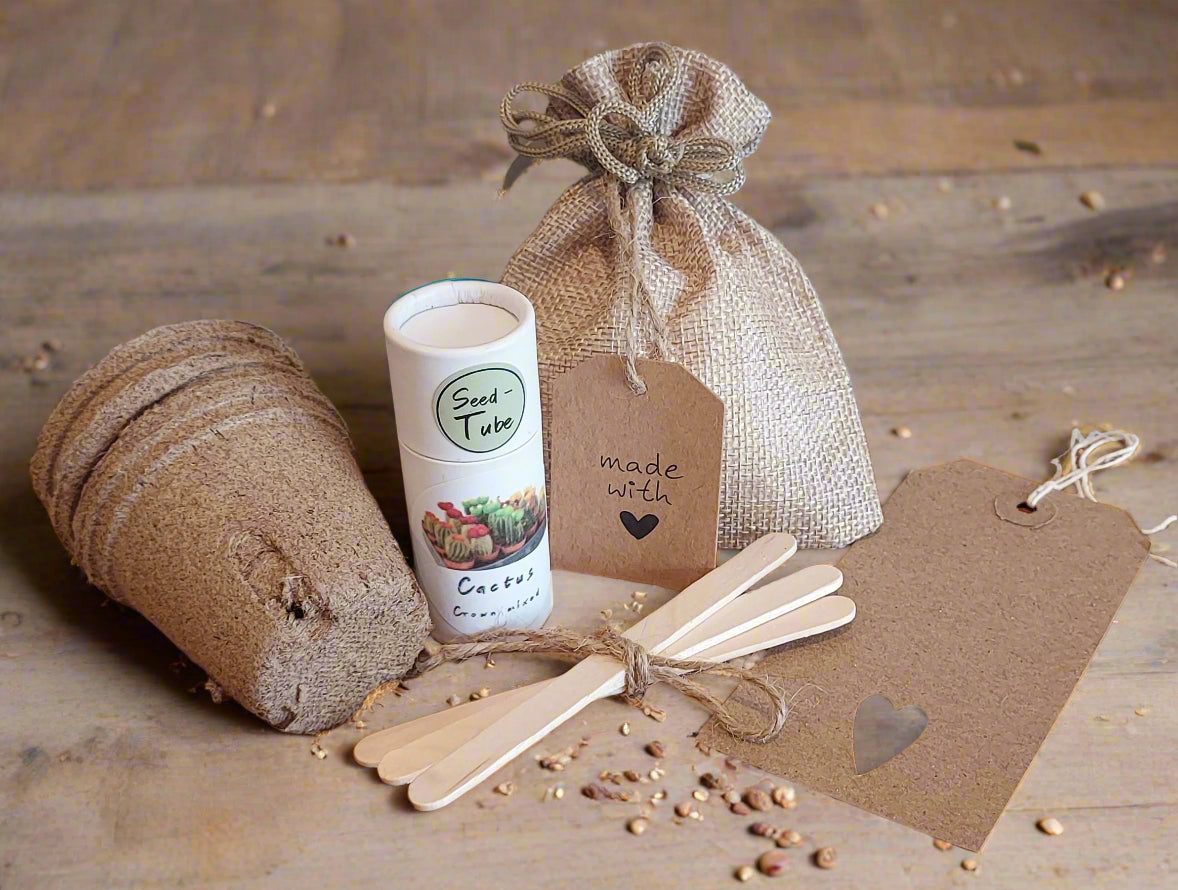 This gift includes starter pots, marker sticks, compost and a hessian drawstring bag, to help you with your growing adventure. Have fun. Made with love.