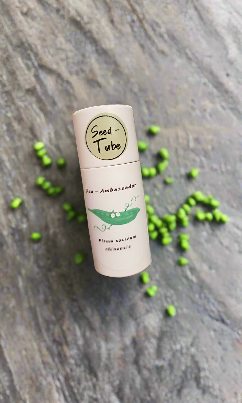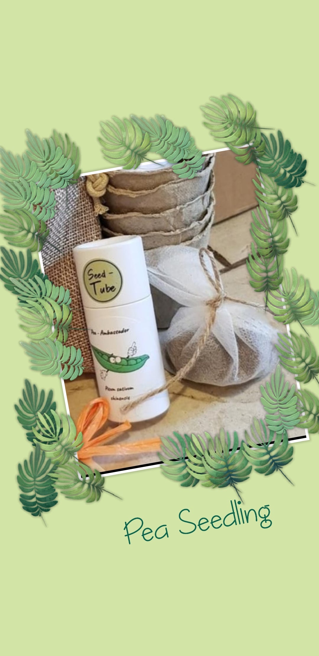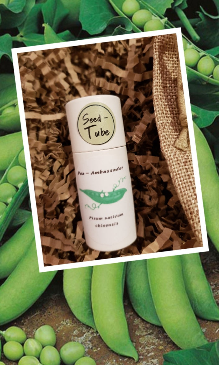 The pea seeds come in a biodegradable tube with the growing instructions.