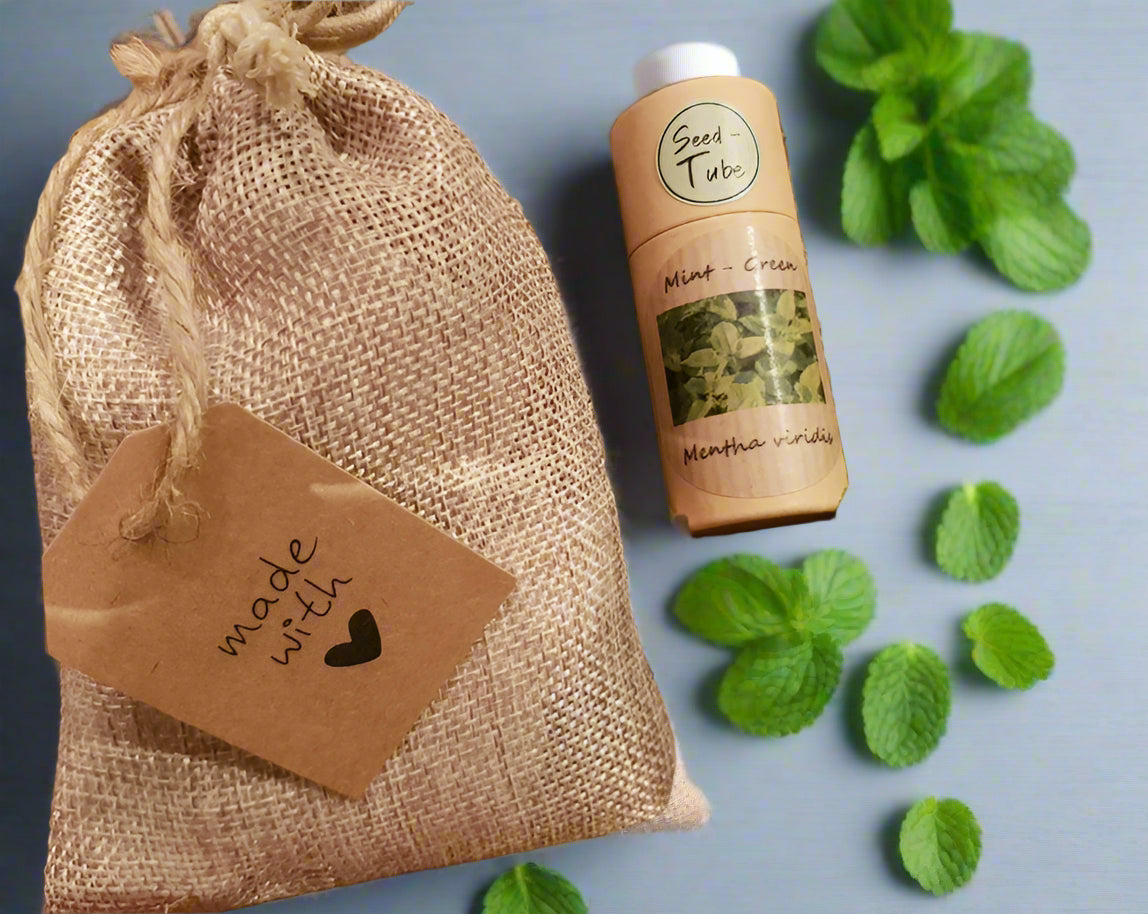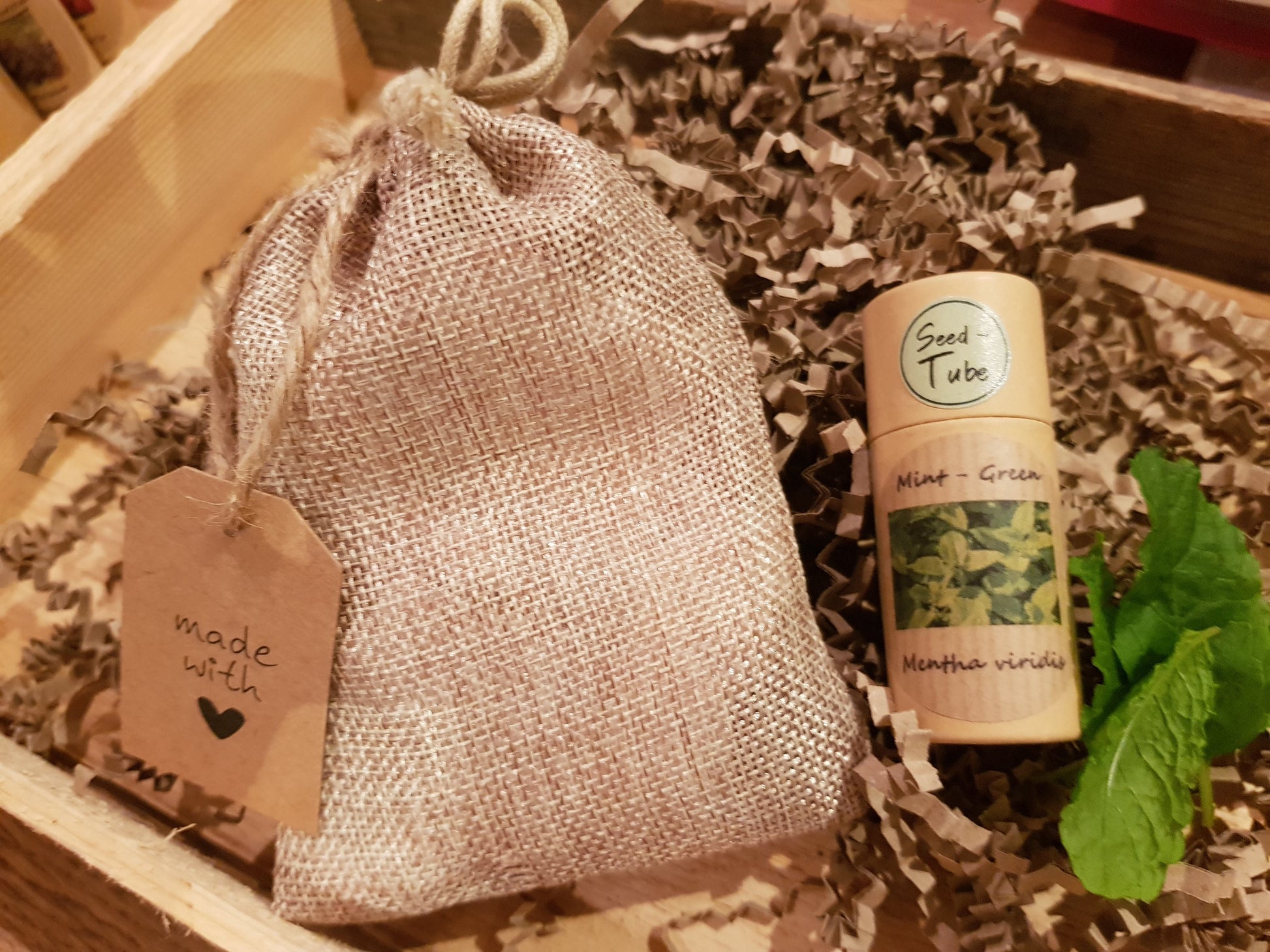 The seeds come in a biodegradable tube with a hessian drawstring bag.