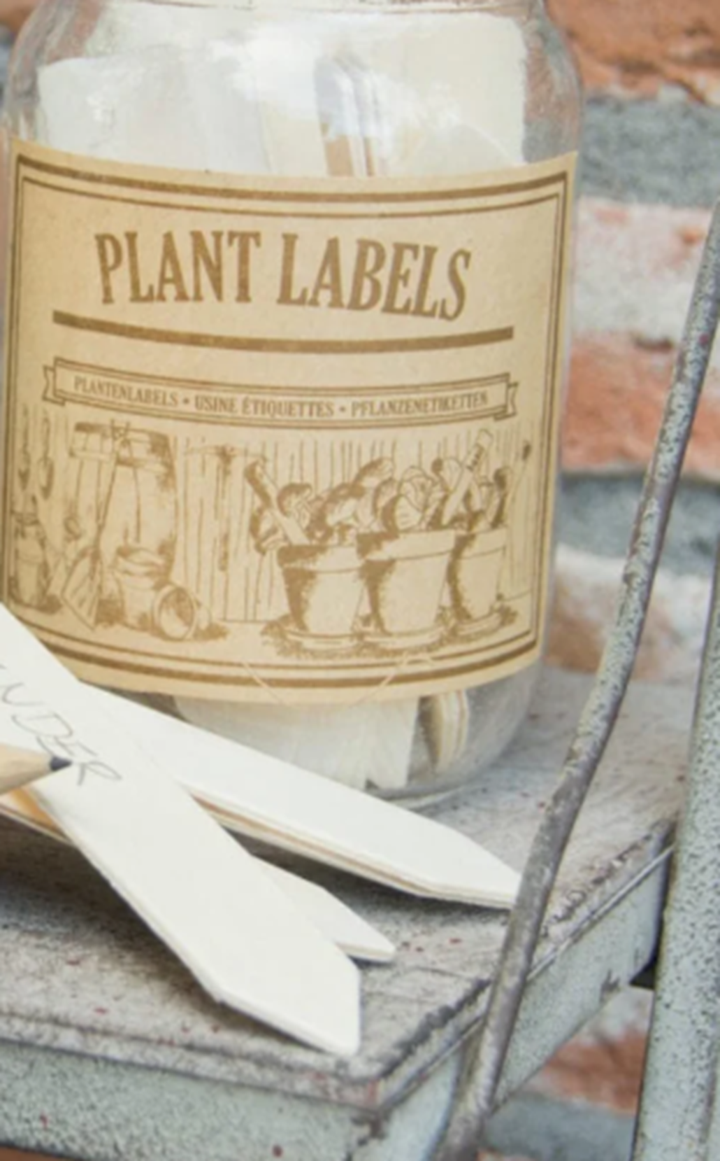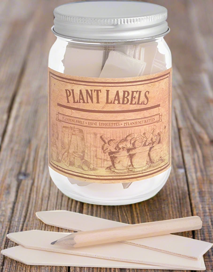 Jam jars are not just used in the kitchen, they can also be used to organise small tools or garden supplies. This clear glass jar allows you to see the contents but also come with a vintage printed label. The jar has approximately 40 plant labels and a pencil which can be used to indicate the name of the flower, herb or vegetable.